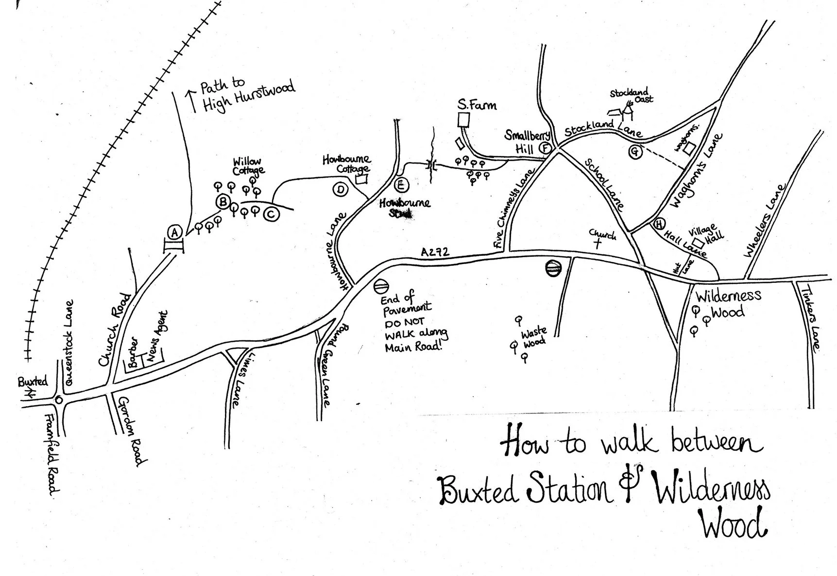 Walking to the Woods If you want to visit via public transport, the closest station is Buxted, on the London Bridge to Uckfield line.You can download this map to print here.With instructions to guide you along your way here.