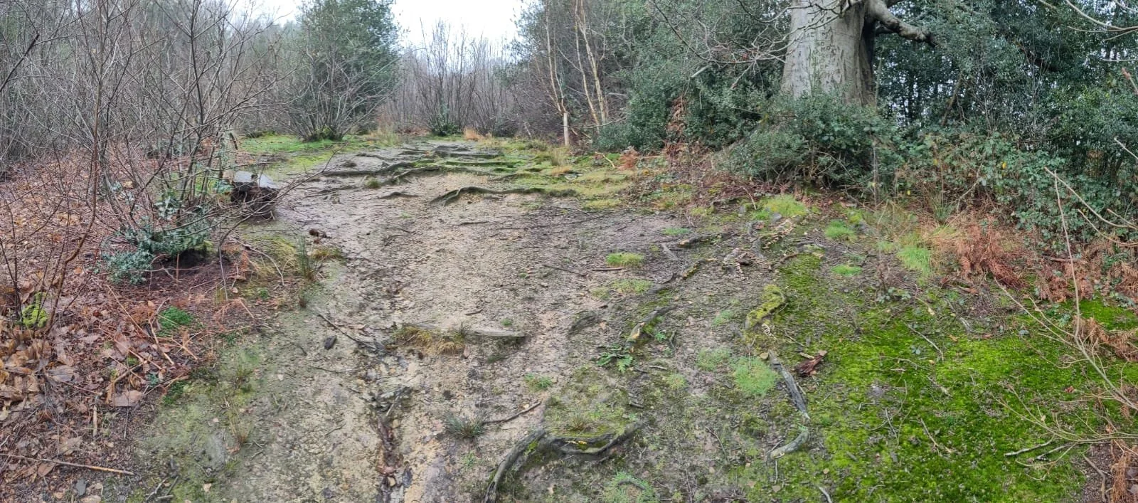 Many of the Wilderness Wood paths suffer from surface runoff, but we have countered this by digging run-off ditches to divert the water into the adjacent woodland. We will therefore do the same at Big Beech diverting it into an adjacent ditch to reduce run-off.